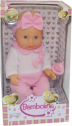 Dukken er lavet af blød plast og er klædt i smukke lyserøde sparkedragter med sløjfe i håret. Det er et sikkert legetøj, der støtter udviklingen af sensitivitet og omsorgsfuld adfærd hos børn. At vugge dukken påvirker barnets udvikling positivt.