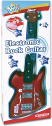 Den røde Bontempi rockguitar med en højde på 62 cm vil glæde små musikere. Den har 6 metalstrenge med lyd ved tryk, 8 forindspillede melodier og kører på 2× AA-batterier (medfølger ikke).