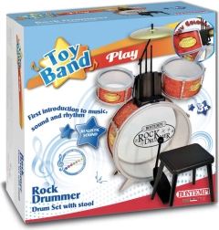 Indeholder alt, hvad en lille trommeslager har brug for: stortromme med pedal, to sidetrommer, to bækkener, et par trommestikker og en skammel for korrekt siddestilling. En fantastisk gave, der inspirerer til regelmæssig øvning og sjov.
