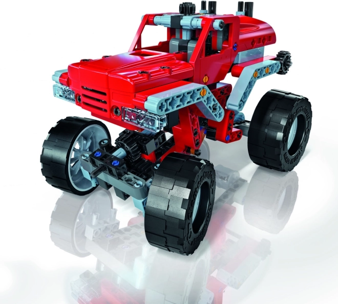 Sættet Mekanisk laboratorium Monster Truck er ideelt til unge entusiaster af teknologi og maskinteknik. Indeni finder du over 200 dele, inklusive differentiale, tandstangs- og pinionstyring samt kardanled. Med dette sæt opdager og skaber børn 10 fantastiske modeller af monstertrucks og lærer det grundlæggende i mekanik.