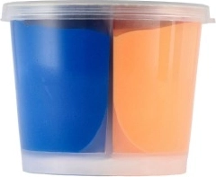 Den praktiske opdeling af bægeret gør det muligt at have to markante farver klar til formning og blanding – uden rod og med overblik.