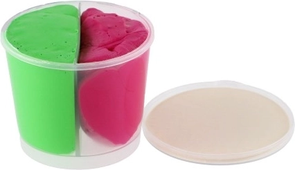 Bægeret med målene 7 × 6 × 7 cm holder massen frisk længere og gør opbevaringen nem. Mixet af tre klare farver indbyder til at eksperimentere, blande og lege sammen.