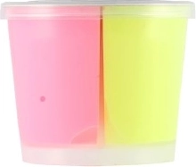 Det gennemsigtige bæger med låg beskytter massen mod udtørring og holder farverne adskilt til videre kreationer.