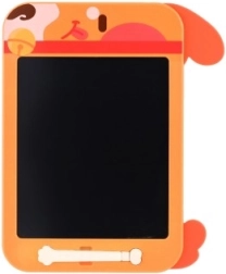 Det sjove orange design med ører og et ben som stylus motiverer børn til at tegne og lære på en legende måde.