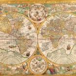 Puslespillet præsenterer et komplekst og æstetisk smukt design af et gammelt verdenskort, ideelt for elskere af kartografi.