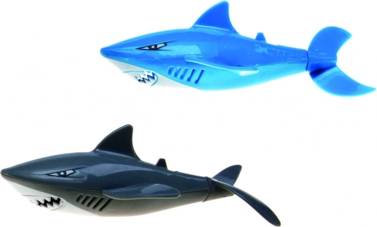 Legetøjet fås i to varianter: blå og sort. Begge hajer har bevægelige haler for sjov leg i vandet.