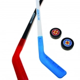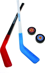 Lær dine børn de grundlæggende hockeyfærdigheder med dette hockeyspilsæt, som inkluderer to hockeystave og to pukker, ideelt til børn fra 3 år.
