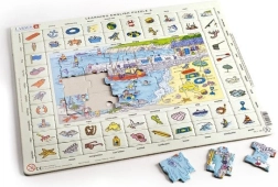 Opdag alt, hvad man kan finde på stranden, og lær at navngive vandsportsgrene gennem dette underholdende puslespil. Hver brik repræsenterer et forskelligt ord, som skal matches til det rigtige billede i kanten af puslespillet. Puslespillet indeholder 18 brikker i midten, som danner en komplet scene med undervisningsord på engelsk. Børn kan finde ordene på billedet for bedre forståelse.
