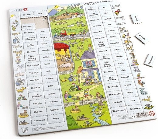 LARSEN puslespil er et ideelt redskab til engelskundervisning med børn. Hver brik har en unik form, hvilket sikrer, at lægningen ikke kun er sjov, men også lærerig: