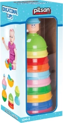 Dette byggesæt indeholder 10 farvede bægre, der kan stables til en pyramide. Det er et fremragende hjælpemiddel for børn, der lærer hånd-øje-koordination, farvegenkendelse og problemløsning. Højden af hele pyramiden er 28 cm, hvilket er den ideelle størrelse for små børn.