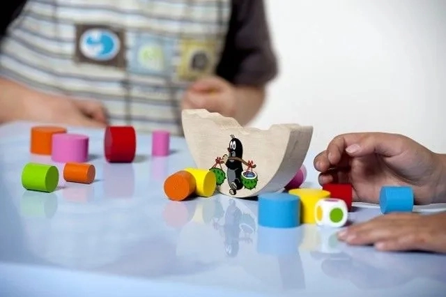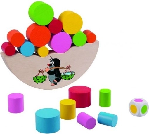Nyd timer af sjov med træbalancespillet Detoa Krtku, spild ikke! . Lavet af kvalitets træ, styrker dette legetøj ikke kun børns motoriske færdigheder, men tilbyder også berigende spilleoplevelser. Terningen bestemmer farven på klodsen, som spilleren skal placere på brættet uden at få det til at falde.