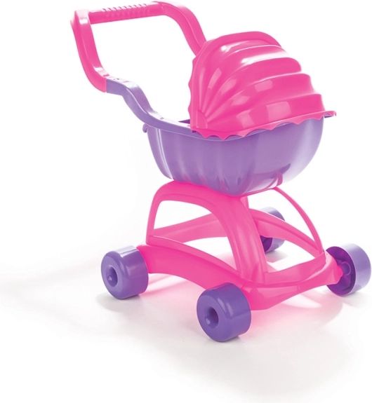 Plastbarnevogn med kaleche til små piger, som er meget let og nem at samle. Opfylder strenge europæiske standarder og er fremstillet af sundhedsmæssigt ufarlige materialer.