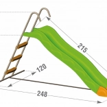 Rutsjebanen er udstyret med en metalramme i sandfarve af rør med en diameter på Ø 30 mm, hvilket giver stabilitet og robusthed. Solide trin med skridsikkert mønster sikrer sikkerhed ved hvert eneste skridt. De glade og klare farver på både bane og trin giver produktet et attraktivt udseende.