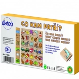 Detoa træpuslespil Hvad hører hjemme hvor er et didaktisk spil, der hjælper børn med at genkende genstande og tilknytte dem til det korrekte billede. Dette spil er ideelt til forbedring af logisk tænkning og hukommelse for børn fra 3 år.