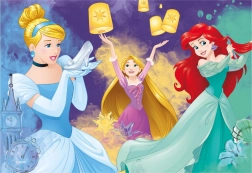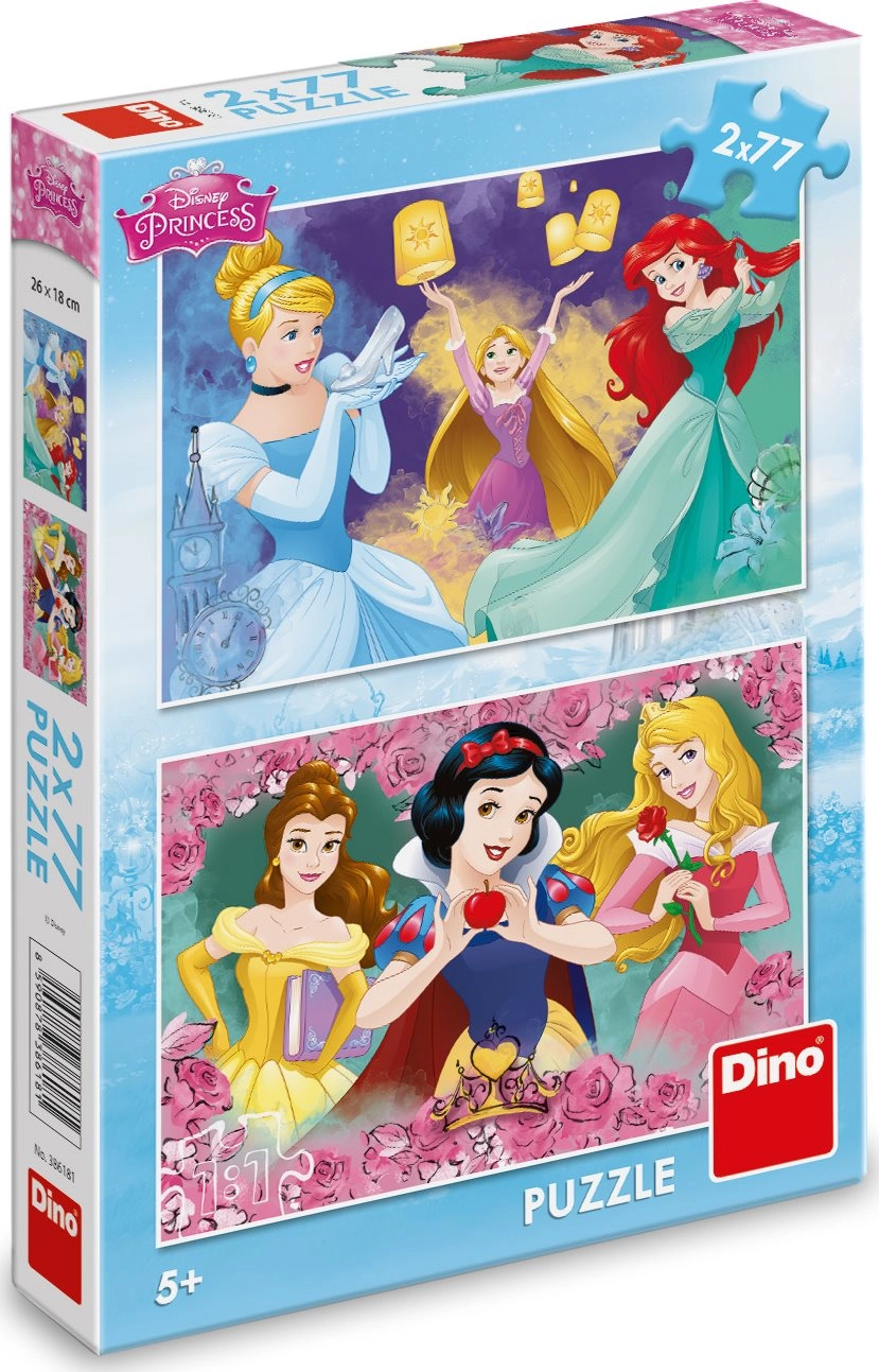 Opdag et sjovt puslespil, der vil glæde enhver lille prinsesse. Sættet indeholder to puslespil, hvert med 77 brikker, med motiver af de populære Disney-prinsesser – Rapunzel, Askepot, Snehvide, Belle, Ariel og Tornerose. Børn træner deres rumlige sans, skarphed og evne til at koncentrere sig, mens de lægger puslespillene.