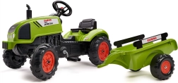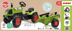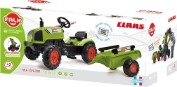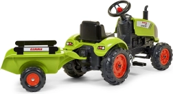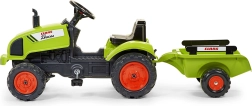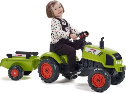 Den børnevenlige trædetraktor CLAAS med aftagelig trailer fra Falk vil glæde enhver lille landmand. Den byder på robust plastkonstruktion, kædetræk på bagakslen, horn på rattet og åbbar motorhjelm med motorimitationsdetaljer. Velegnet til børn fra 2 år og med en bæreevne på op til 30 kg.