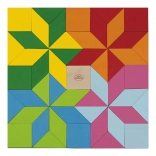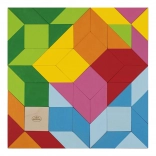 De farverige træbrikker indbyder til at lægge mønstre og eksperimentere. Når børn griber brikkerne, træner de finmotorikken i fingrene, koordination og kreativ tænkning. Legen stimulerer selvstændighed og glæden ved at opdage.