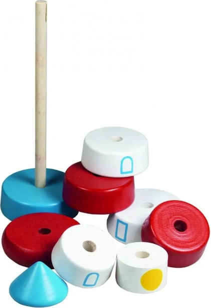 Stabling på en pind træner hånd-øje-koordination, sortering efter form og størrelse samt farveopfattelse. Ideel som det første didaktiske legetøj til de mindste.