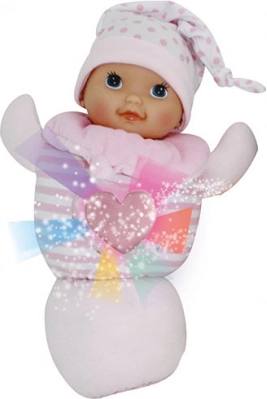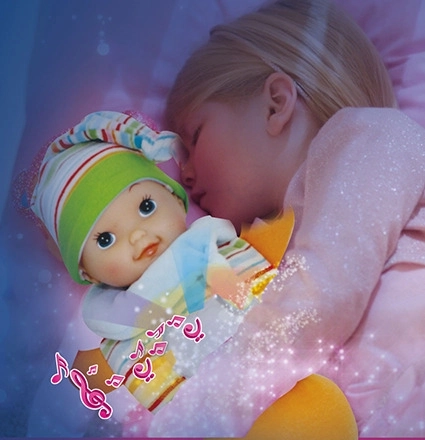 De interaktive funktioner fanger børnenes opmærksomhed – dukken spiller blid musik og tænder små lys for endnu større legeglæde.