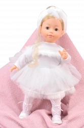Dukken Bambolina Molly ballerina er en ideel legekammerat, som også stimulerer fantasien. Takket være et hoved, arme og ben af vinyl føles hun realistisk og er behagelig at holde om. I sin lyserøde balletkjole og med det lange hår er hun klar til enhver optræden.