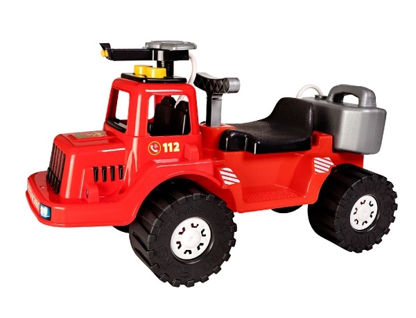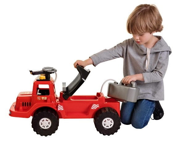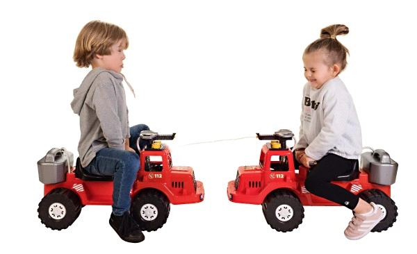Takket være det lave tyngdepunkt, de brede hjul og det ergonomiske håndtag er kørslen stabil og komfortabel. Gåbilen understøtter udvikling af grovmotorik, koordination og barnets selvtillid. Realistiske detaljer, nummer 112 og “FIRE DEPARTMENT”-tryk understreger det autentiske look.