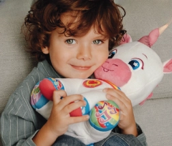 Denne bløde, interaktive enhjørning er den perfekte makker til de første opdagelser af verden. Børn vil elske de bløde kram, de lysende kinder og hornet samt de farvede knapper på poterne, som reagerer med glade lyde, sange og rim. Legetøjet taler tjekkisk og kan også skiftes til slovakisk.