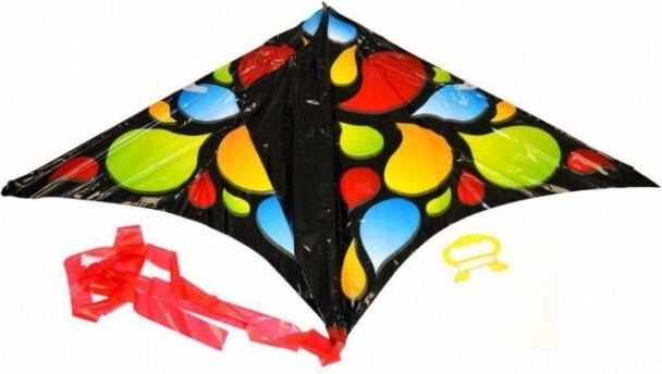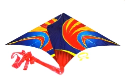 Flyvende drage med dimensionerne 61 x 114 cm er et sjovt legetøj for børn og voksne, tilgængelig i to farver: sort og blå.