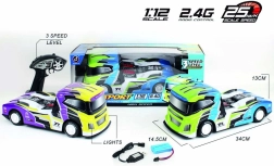 Nyd dynamisk kørsel med denne R/C racerlastevogn, som begejstrer både børn og voksne. Med tre justerbare hastigheder (8 / 16 / 25 km/t) tilpasser du nemt ydeevnen til både begyndere og øvede. Forreste LED-lys og realistiske detaljer øger autenticiteten, mens støddæmpere på begge aksler sikrer jævn kørsel selv på grovere underlag.