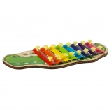 Xylofonen er lavet af en kombination af træ og metal. Det er nok at slå let med køllen på pladen for at få en ren tone, hvis lydstyrke afhænger af slagets styrke. De livlige og varme farver indbyder desuden til leg og er perfekte til farvelæring.