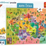 Saml dit eget kort over Tjekkiet med dette unikke puslespil fra TREFL. Hver brik repræsenterer tjekkiske regioner, og det samlede billede viser bynavne og karakteristiske bygninger i de enkelte områder. Ud over underholdning lærer børnene meget om deres land.
