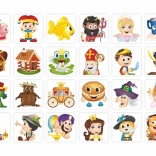 Farverige motiver af prinsesser, riddere, drager og andre eventyrfigurer begejstrer børn og gør det nemmere at finde par.