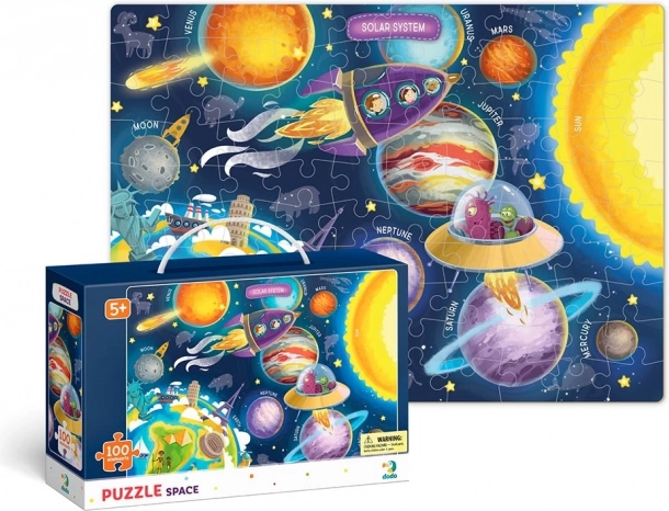 Når børn lægger dette puslespil, lærer de om de enkelte planeter i solsystemet. Alder: 5+. Størrelse på puslespil efter samling: 64×46 cm