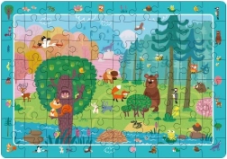 Denne smukke puslespilsæske med temaet skovens venner giver børn både underholdning og læring. Efter at have samlet billedet kan de spille det interaktive spil Find og søg, hvor de leder efter og fastlægger placeringen af forskellige dyr i skoven. Takket være de klare farver og tydelige former lærer børnene naturligt at genkende detaljer og sammenhænge.