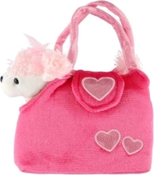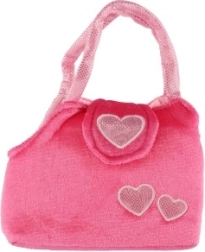 Den glade lyserøde taske med hjerter og den bløde hund med sløjfe vil glæde alle små dyreelskere.