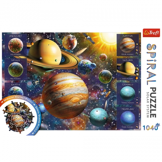 Opdag fornøjelsen ved originale puslespil, hvis brikker danner en unik spiralform, når de er samlet. Det 1040-brikkers puslespil med motiv af solsystemet byder på et iøjnefaldende design, kvalitetsforarbejdning og komfortabel samling takket være kalandreret papir, som reducerer genskin. En ideel gave til både rumentusiaster og krævende puslespilsbyggere.