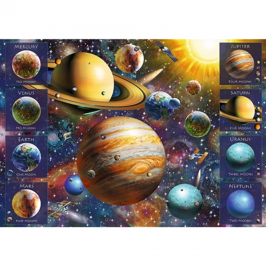 Når puslespillet er samlet, får du et detaljeret billede i størrelsen 68,3 × 48 cm, hvor planeter og kosmiske detaljer træder flot frem. Puslespillet er fremstillet i Polen af miljøvenlige materialer og af robust, kvalitetskarton – en fornøjelse for alle, der elsker rummet og et nytænkende design.