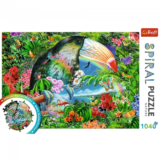 Oplev et unikt spiralformet puslespil med motiv af tropiske dyr. Sættet indeholder 1040 brikker, som samlet danner et spiralformet billede på 68,3 × 48 cm. Fremstillet af kvalitets- og miljøvenlige materialer med kalandreret, lysreflekterende papir for lettere samling. Underholdning og udfordring for enhver puslespilsentusiast.