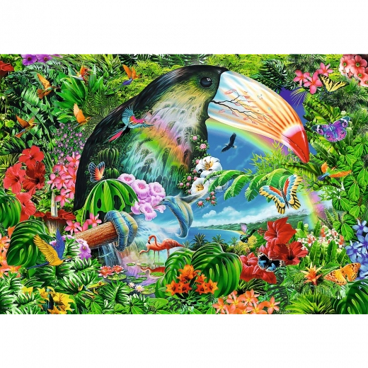 Spiralpuslespil med tropiske dyr, 1040 brikker. Kalandreret kvalitetspapir, mål 68,3 × 48 cm, miljøvenlig produktion. Sjov og original udfordring.