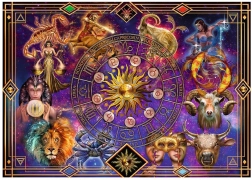 Den farverige komposition præsenterer alle stjernetegn i en mystisk, kosmisk palette – ideel til fans af astrologi.