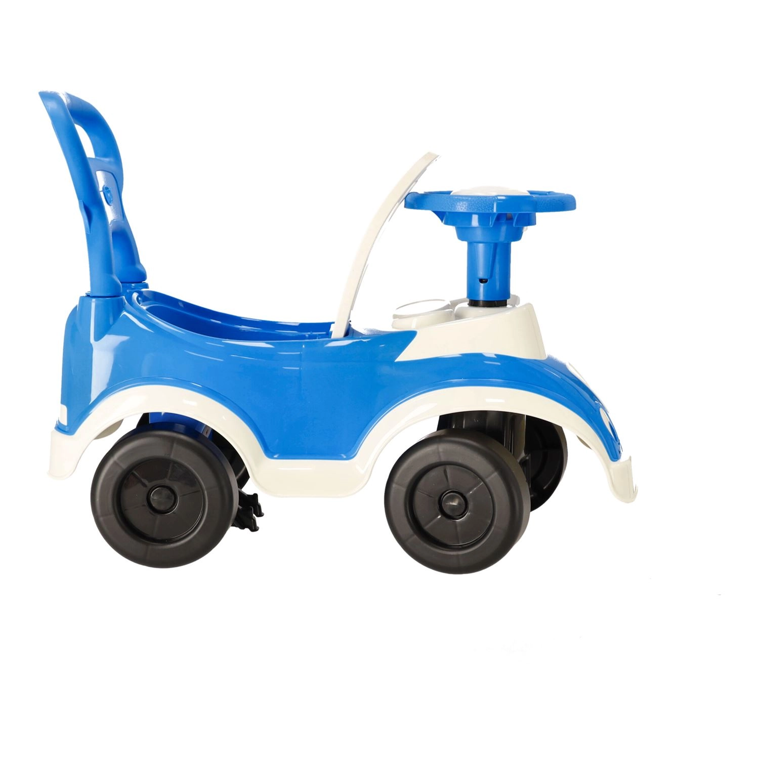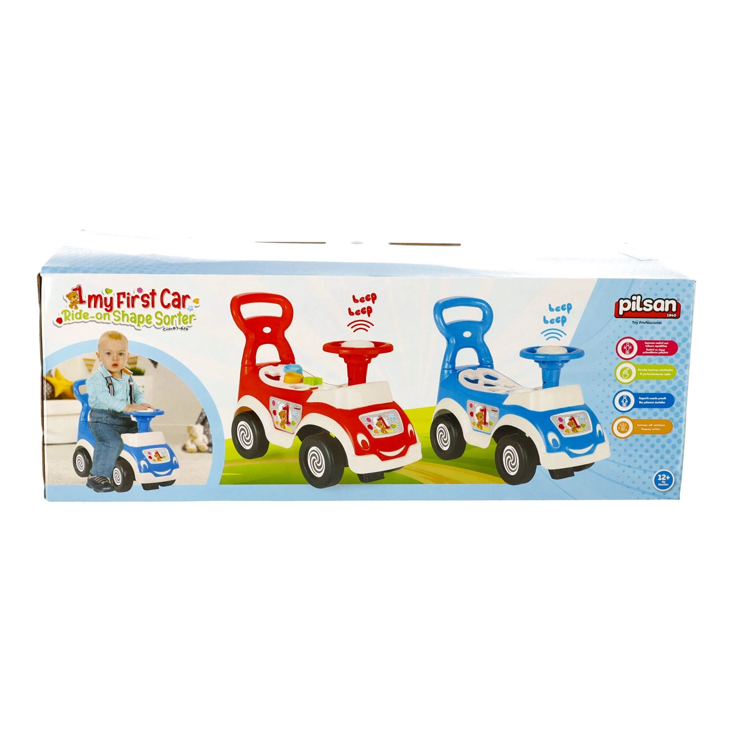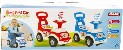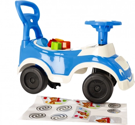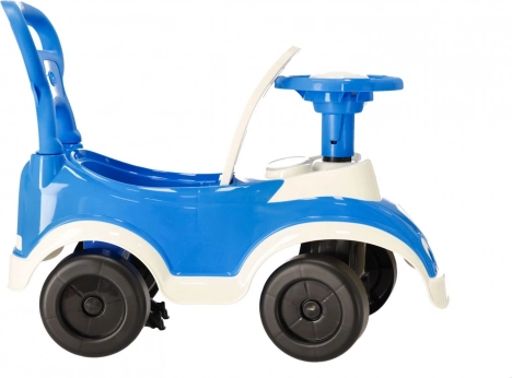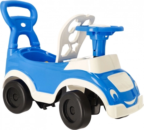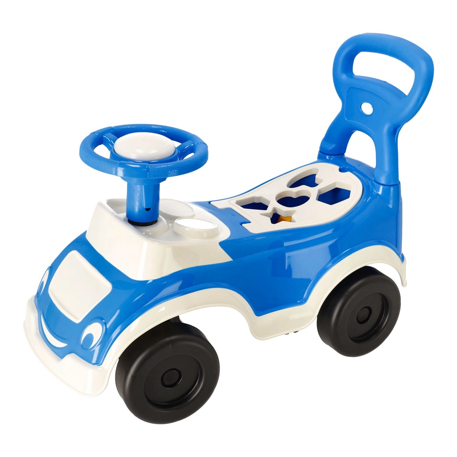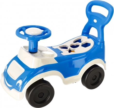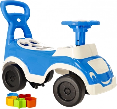 Den praktiske 4-i-1 skubebil fra Pilsan i blå kombinerer kørsel, gåvogn, skubber og en lærerig formsorter. Den tilbyder en sikker ryglæn med mulighed for at fjerne det, mekanisk horn, opbevaringsrum under sædet og materialer af høj kvalitet uden sundhedsskadelige stoffer. Understøtter børns motorik, balance og koordinering ved sjov leg både inde og ude.