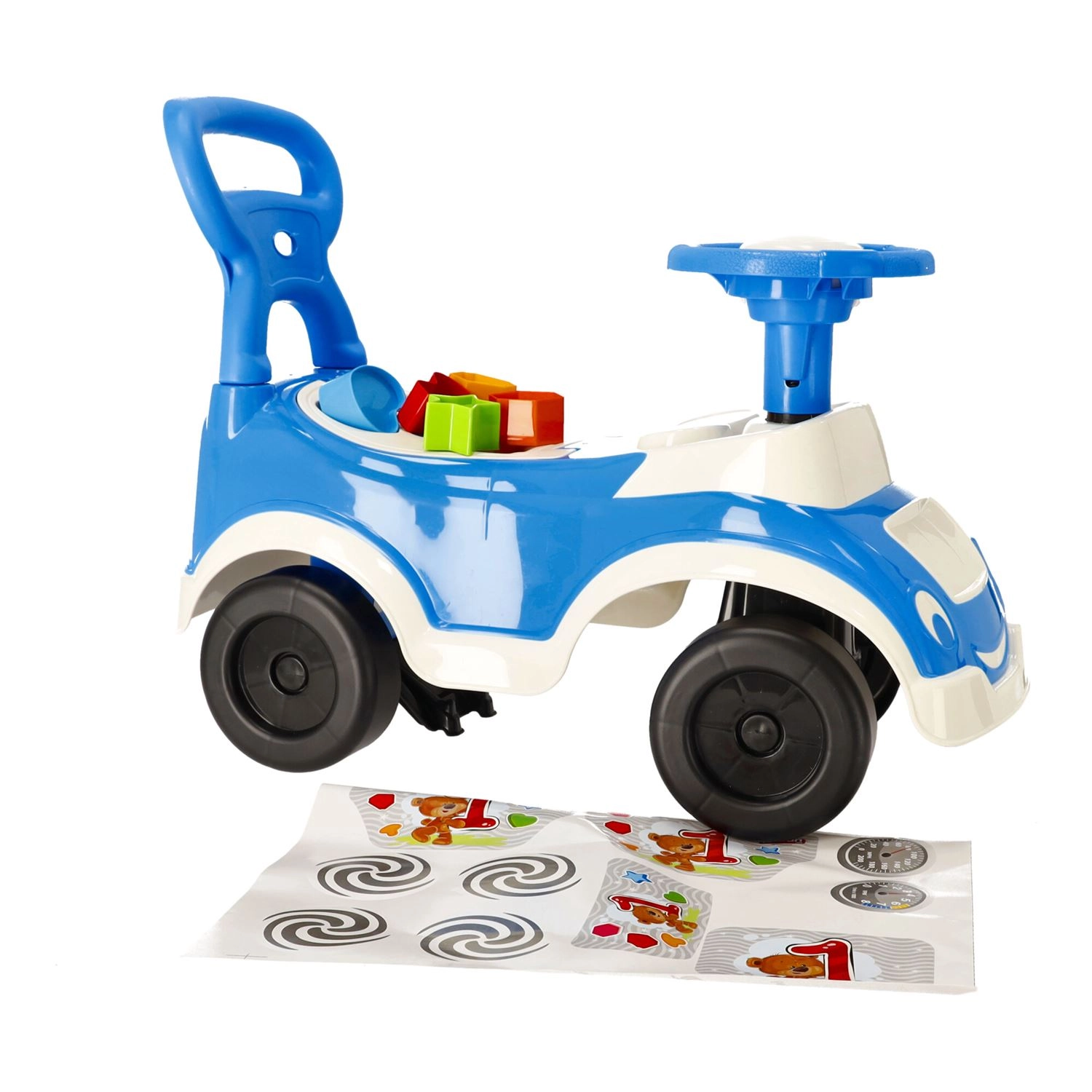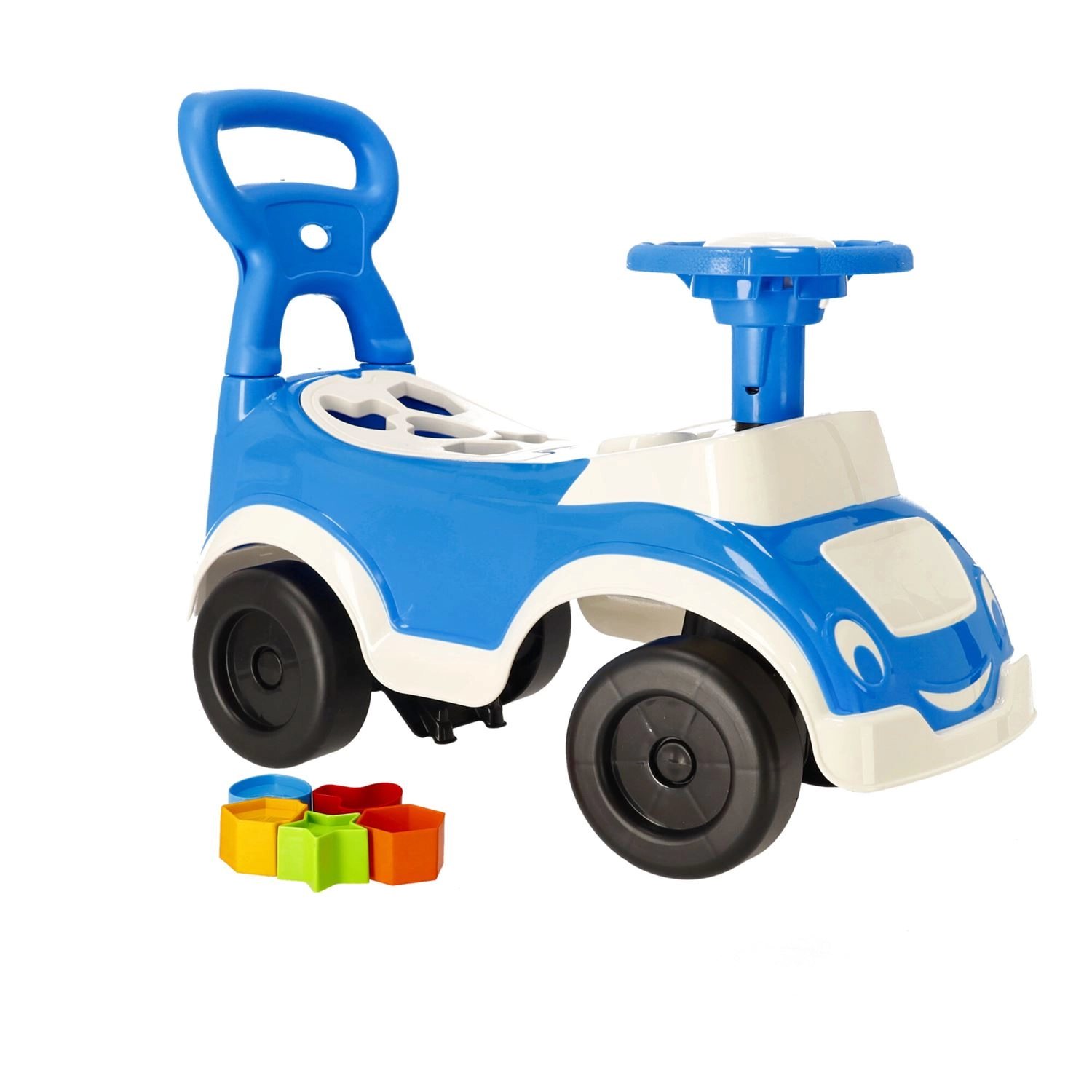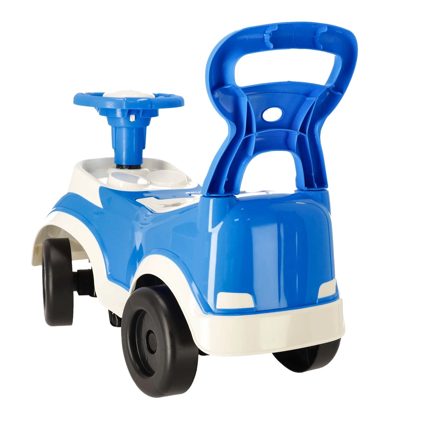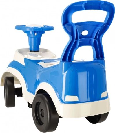 Den praktiske 4-i-1 skubebil fra Pilsan i blå kombinerer kørsel, gåvogn, skubber og en lærerig formsorter. Den tilbyder en sikker ryglæn med mulighed for at fjerne det, mekanisk horn, opbevaringsrum under sædet og materialer af høj kvalitet uden sundhedsskadelige stoffer. Understøtter børns motorik, balance og koordinering ved sjov leg både inde og ude.