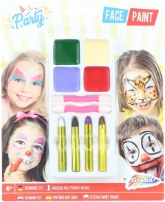 Dette sæt til ansigts- og kropsmaling tilbyder alt, hvad du behøver til en hurtig og effektfuld forvandling. Med kombinationen af 4 cremefarver og 4 farveblyanter skaber du præcise linjer, bløde skygger og markante motiver. Farverne påføres nemt med de medfølgende applikatorer, og til større flader kan du bruge en svamp.