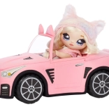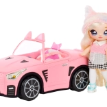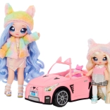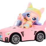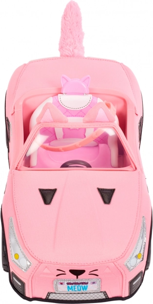 Na! Na! Na! Surprise Stilet Cabriolet gør det muligt for dukker at rejse med elegance og originalitet. Denne bløde tekstilbil er designet til en komfortabel og stilfuld tur med rigtige drejende hjul.