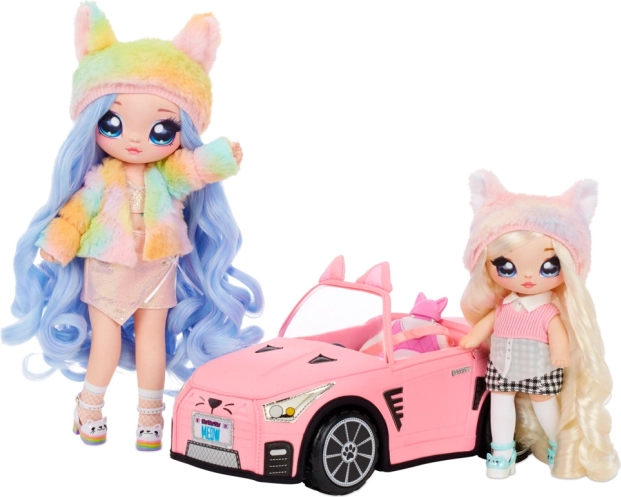 Præsenterer Na! Na! Na! Surprise Stilet Cabriolet, det unikke middel til at rejse med dine yndlingsdukker! Denne cabriolet kombinerer moderigtigt design med praktiske funktioner for maksimal sjov og kreativ leg.