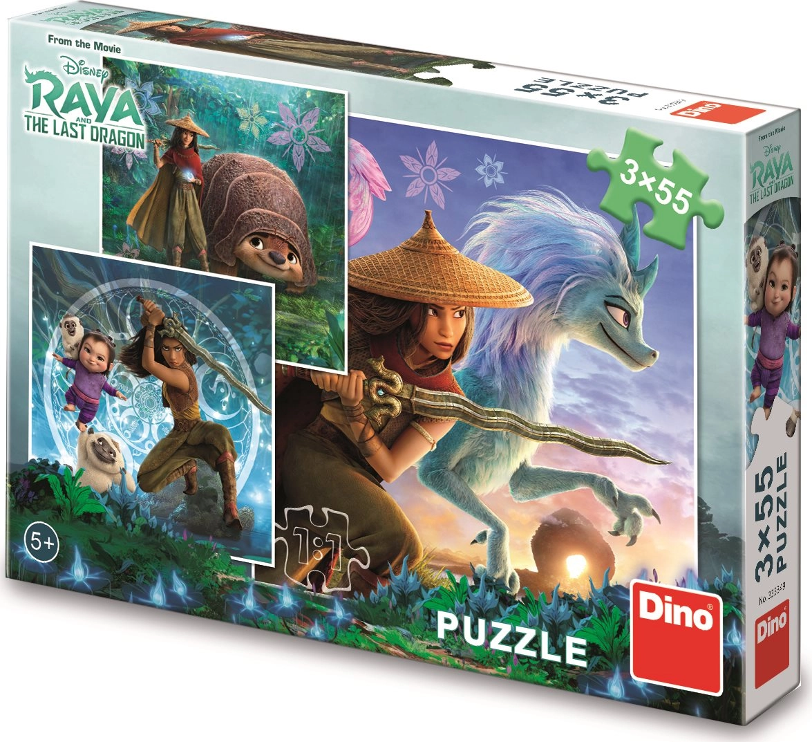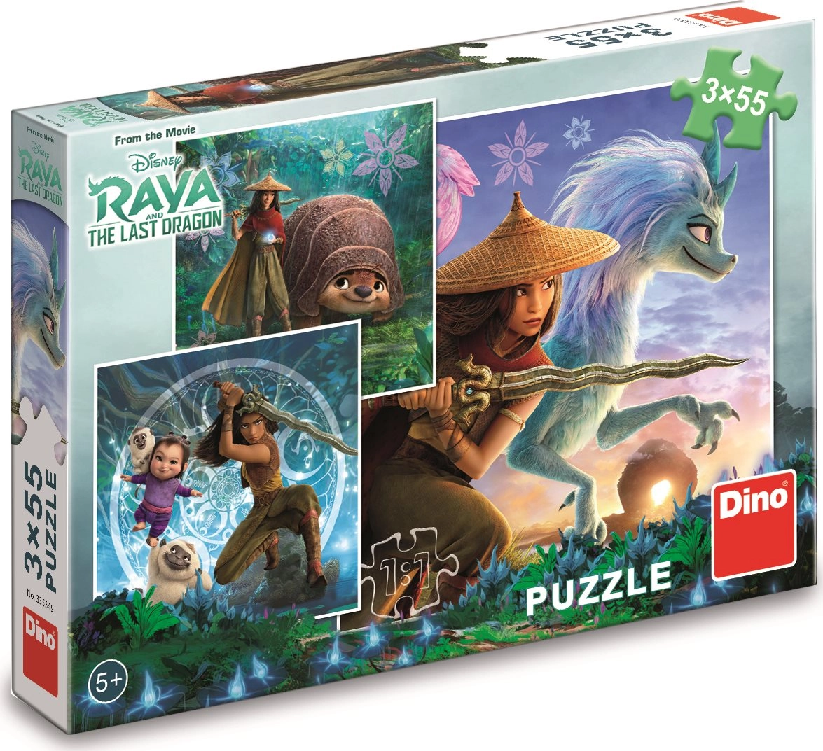 Dette fantastiske puslespilsæt indeholder tre puslespil, hver med 55 brikker, som vil begejstre børn fra 5 år. Børn kan dykke ned i verdenen med heltinden Raya, den trofaste drage Sisu og vennen Tuk Tuk. Disse puslespil er lavet af holdbar og sikker karton, der tåler selv hårdere håndtering.