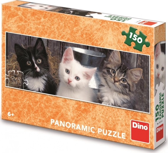 Sødt panoramapuslespil med motiv af tre killinger, der glæder både yngre skolebørn og dyreelskere. Indeholder 150 brikker og danner efter samling et bredt billede, ideelt til udstilling. Puslespillet er fremstillet i Tjekkiet af sundhedsmæssigt ufarlig karton og udvikler under samling rumlig forestillingsevne, snarrådighed og koncentration.