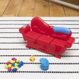 Spillet udvikler reaktionsevne, tålmodighed og finmotorik, og samtidig byder det på masser af tilfældige og sjove situationer, som børn elsker. Pak ud og spil – i æsken finder du alt, hvad du behøver: en interaktiv sofa, farverige jetoner, snacks og en spilterning (afhængigt af version kan det også være en spinner).