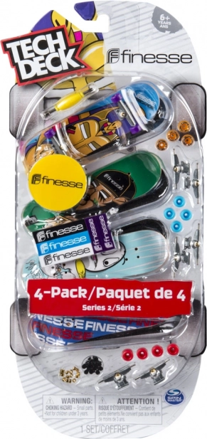 Oplev fingerboardingens verden med Tech Deck i en firespakke. Styr de små skateboard med fingrene, træn tricks og kombiner originale shapes og designs. I pakken finder du alt, hvad du behøver, inklusive mini-værktøj, ekstra trucks og hjul samt klistermærker. Et godt valg for både begyndere og øvede, fra 6 år.
