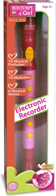 Den elektroniske fløjte er det ideelle legetøj for små musikere. Den består af 10 musikalske forspil, 10 melodier og 6 musiknoder, som underholder børn i timevis. Muligheden for at puste i mundstykket og høre melodien gør fløjten ekstra sjov. Den har også lydstyrkekontrol og et aftageligt mundstykke, der kan vaskes.
