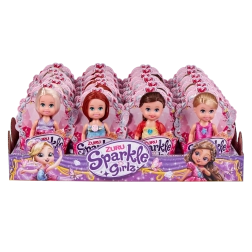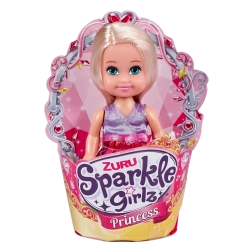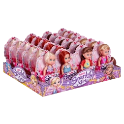 Sparkle Girlz-dukken imponerer med en smuk kjole med glitrende detaljer og et farverigt design, som fortryller små prinsesser. Indpakningen i kornetform gør den til en perfekt overraskelse – både som gave og som en fin pynt i børneværelset.
